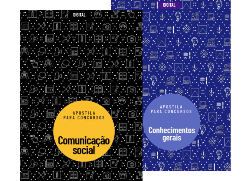 Apostilas impressas (espiral, capa dura, A5) de comunicação social e conhecimentos gerais + apostilas digitais (PDF) de comunicação e de conhecimentos gerais + conteúdo on-line